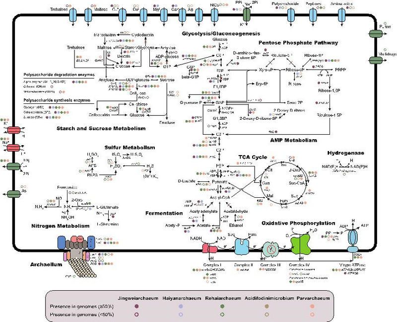 圖二 精衛古菌與Parvarchaeales的代謝潛能