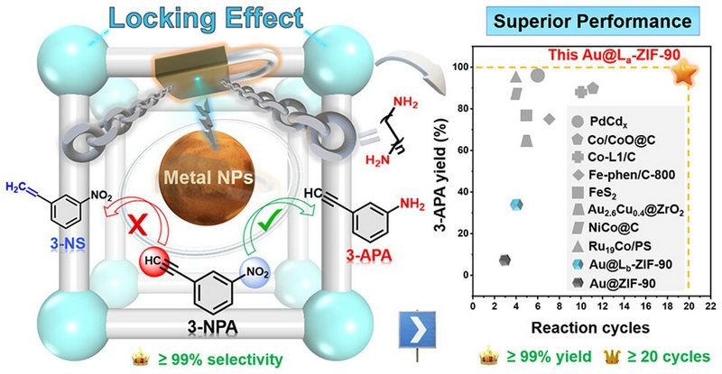 MOF“鎖效應”制備高載量超小的金納米顆粒實現高選擇性加氫催化