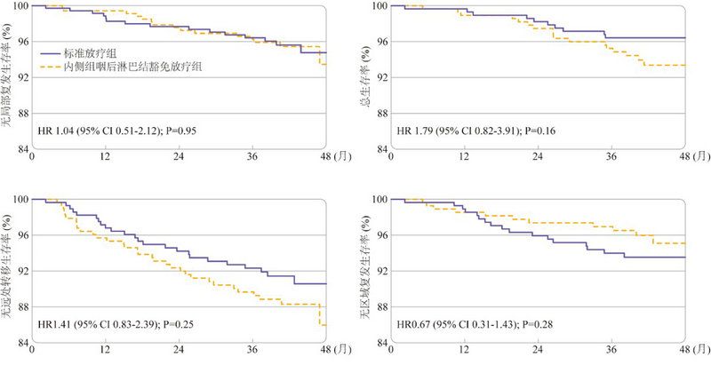 內側組咽后淋巴區豁免放療組與標準放療組生存曲線比較