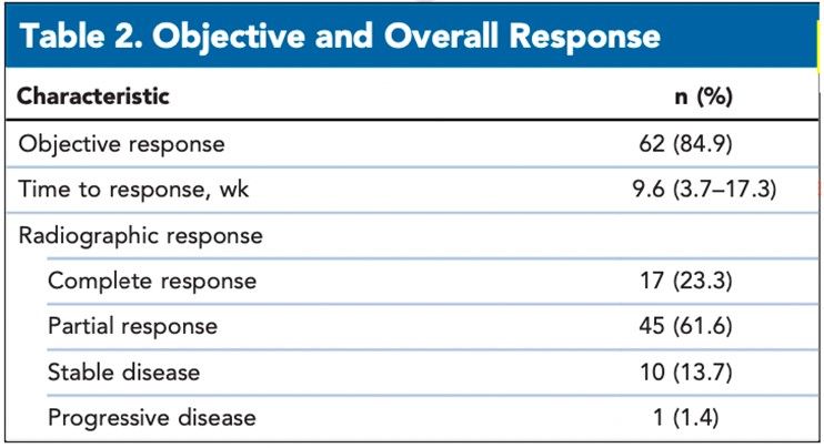 研究納入了來自國內(nèi)三家中心73名接受PD-1抗體新輔助免疫治療的結(jié)直腸癌患者。結(jié)果顯示,84.9%的患者獲得客觀緩解,其中23.3%為臨床完全緩解采取觀察等待策略。即便對于局部分期較晚的患者,客觀緩解率也達到了84%。在接受手術(shù)的患者中,有近60%的患者獲得病理完全緩解。平均隨訪了17.2個月后,中位無病生存期(DFS)和中位總生存期(OS)均未達到。在接受手術(shù)和達到完全緩解的患者中,2年腫瘤特異性無病生存率和總生存率均為100%。