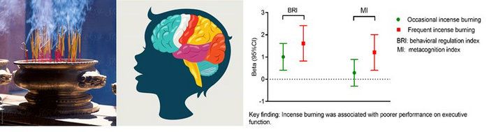 中大新聞網訊(通訊員桂曌環)“燒香”的歷史由來已久,在亞洲和阿拉伯灣地區非常普遍,是當地居民祭祖、拜佛、凈化空氣或釋放香氣而經常采取的方式。調查顯示,廣州1/4的家庭有“燒香”習慣;臺灣和新加坡,因道教和佛教的興盛,“燒香”習俗更為普遍,約1/3至一半的家庭會在家里燒香。一根香燃燒時間大約1~1.5小時,期間可釋放多種空氣污染物,包括顆粒物,氣體污染物,多環芳香烴和揮發性有機化合物等,其中多環芳香烴屬于一類致癌物。研究發現,燃燒1克佛香產生的顆粒物可高達45 mg,遠多于香煙燃燒產生的顆粒物(10 mg)。已有研究表明“燒香”和人群心血管疾病、肺癌以及孕期高血壓等存在關聯。兒童時期是大腦快速發育的關鍵時期,在此期間接觸不良環境因素可能會造成即刻或將來的健康危害。家中“燒香”是否也會影響兒童認知功能?相關研究較少且結論尚不明確。