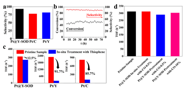 圖二:Y分子篩SOD籠限域單原子鉑的催化性能