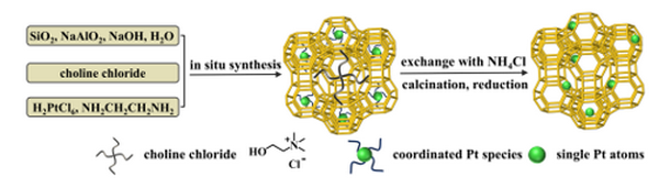 圖一:Y分子篩SOD籠限域單原子鉑的制備示意圖