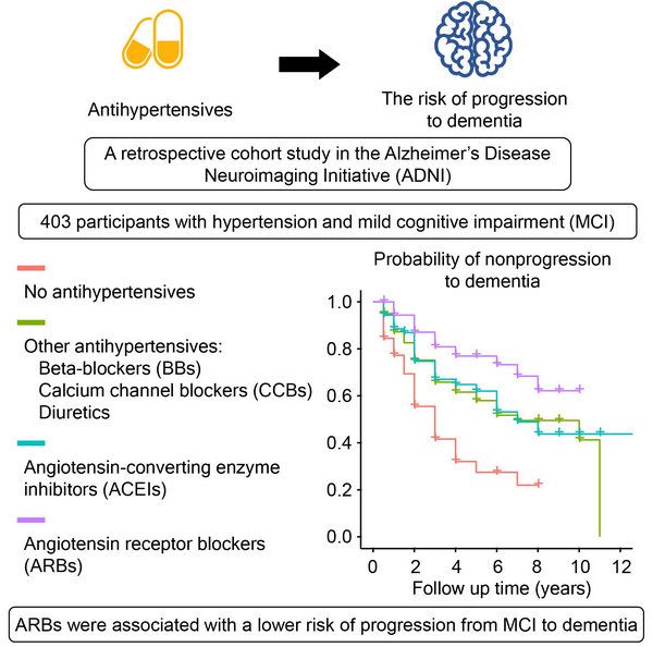 中大新聞網訊(通訊員鄧鎮宏)2022年6月29日,中山大學孫逸仙紀念醫院神經科唐亞梅教授團隊在期刊Hypertension在線發表題為“Angiotensin receptor blockers are associated with a lower risk of progression from mild cognitive impairment to dementia”的研究論文。研究揭示了在患有高血壓和輕度認知功能障礙(MCI)的患者中,與血管緊張素轉化酶抑制劑(ACEI)和其他降壓藥相比,血管緊張素受體阻滯劑(ARB)更有利于降低MCI向癡呆進展的風險。孫逸仙紀念醫院神經科碩士研究生鄧鎮宏為本論文第一作者,唐亞梅教授為獨立通訊作者。