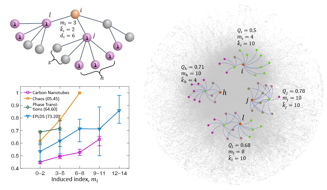 該研究利用科學(xué)家合作行為的大規(guī)模數(shù)據(jù),分析了科學(xué)家研究領(lǐng)域轉(zhuǎn)變的動(dòng)態(tài)過(guò)程,發(fā)現(xiàn)相對(duì)于科學(xué)家的直接合作者,間接合作者對(duì)其研究領(lǐng)域的影響更大。這一現(xiàn)象在當(dāng)前許多熱點(diǎn)領(lǐng)域都存在,如復(fù)雜網(wǎng)絡(luò)、石墨烯、量子科技。