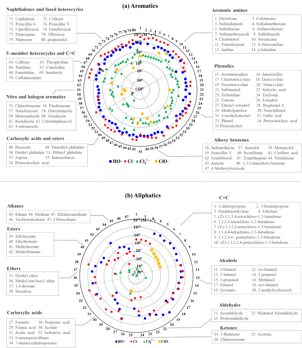 HO?和RHS對含有不同官能團的芳香類和脂肪類有機物的反應速率