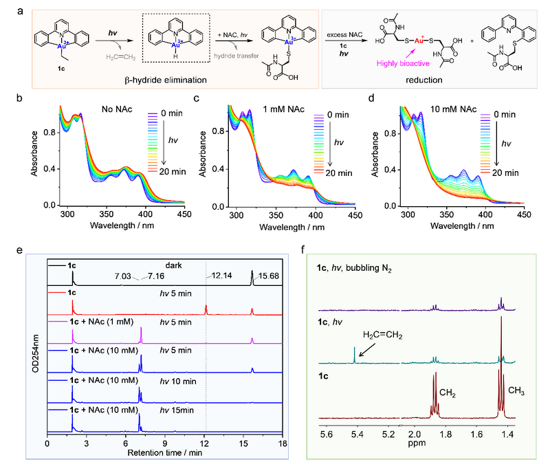 圖1. 烷基金(III)配合物發生光誘導的b-氫消除和還原反應