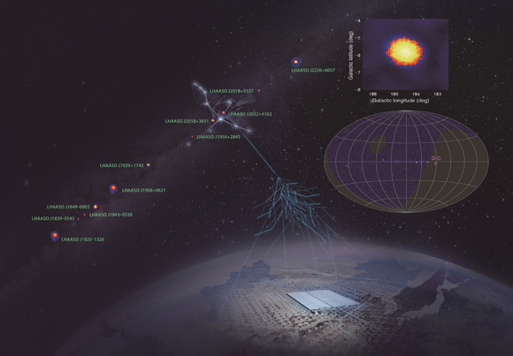 LHAASO全稱“高海拔宇宙線觀測站”,作為我國重大科技基礎設施,既是宇宙線探測陣列,也是當前世界上最靈敏的超高能伽馬射線探測器。它承擔著捕獲測量高能宇宙粒子、為我們理解銀河系以至于本星系團環境提供重要信息的任務。在2021年5月17日,LHAASO實驗組就在1/2規模運行11個月累積的數據中記錄了迄今為止人類探測到的最高能的宇宙光子(能量為1.4拍電子伏,1拍=1千萬億=1015),并在Nature期刊上發表了相關成果。