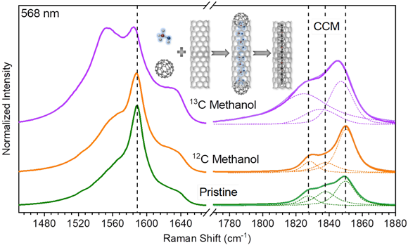 為了解決一維碳鏈的穩定性問題,我校材料科學與工程學院石磊副教授和Thomas Pichler教授等人合作發展了一種高溫高真空熱處理法,利用碳納米管為模板制備得到了世界上最長的一維碳鏈,且在常溫常壓下具有優異的穩定性(Shi L., et al. Nature Materials, 15, 634–639, 2016)。此后,通過超聲和梯度密度離心我們還實現了抽出和分離雙壁碳納米管中的碳鏈和內層碳納米管,發現碳鏈的性能和內層碳納米管密切相關,而與外層碳納米管無關(Shi L., et al. ACS Nano, 12, 8477–8484, 2018)。隨后與瑞士蘇黎世聯邦理工學院的合作研究表明單根碳鏈的性能確實可以通過碳納米管和碳鏈之間的相互作用來調控(Heeg S., et al. Nano Letters, 18, 5426–5431, 2018)。然而從制備的角度上來看,控制合成雙壁碳納米管的直徑十分困難,因此石磊副教授開發了一種高溫高真空熱處理法,可以將不同直徑的單壁碳納米管轉化為雙壁碳納米管,從而實現了雙壁碳納米管直徑的控制(Shi L., et al. Nanoscale 10, 21254–21261, 2018)。