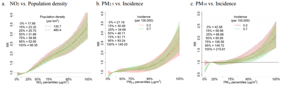 2013-2018年NO2, PM2.5和PM10與發病率的相對風險預測