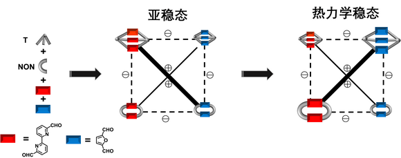 圖3. 基于有機籠狀與環(huán)狀化合物的[2×2]自分類組分動態(tài)網(wǎng)絡(luò)示意圖