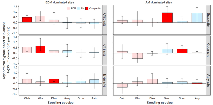 地下菌絲網絡對不同類型菌根植物幼苗生長的特異性影響