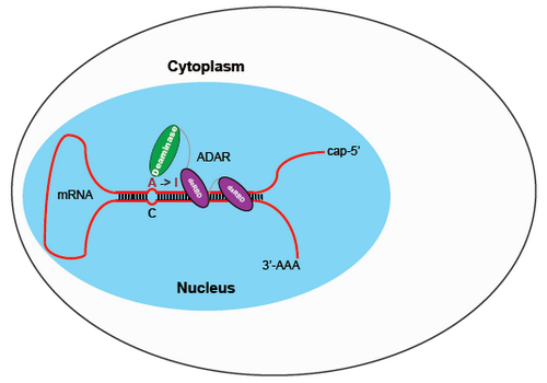 ADAR蛋白結合和編輯RNA雙鏈區域示意圖
