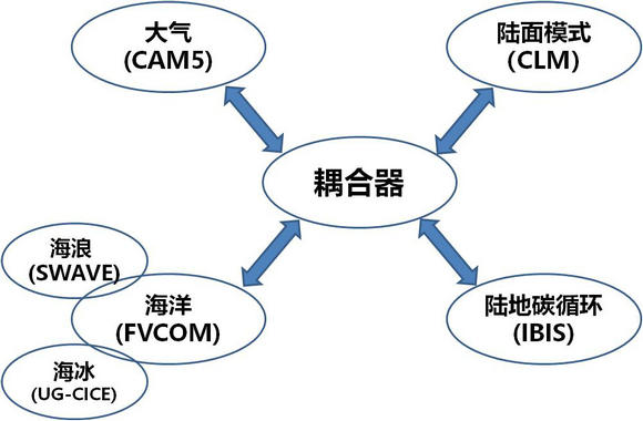 構建了中山大學集成地球系統模式(SYCIM,Sun Yat-Sen University Integrated Earth System Model),集成了海洋(包括海冰、海浪)、大氣、陸面模式、陸地碳循環等關鍵模塊(圖1),構建了完整的地球系統模式。