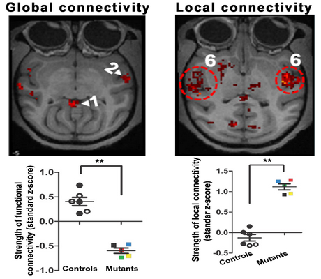 我校中山醫學院項鵬教授、柯瓊副教授研究團隊與深圳先進院腦認知與腦疾病研究所、美國麻省理工學院、華南農業大學等團隊合作,應用CRISPR/Cas9 技術成功制備出新型模擬人類自閉癥SHANK3基因突變的靈長類動物模型,并獲得基因突變后代,首次在靈長類動物重現了人類自閉癥譜系障礙(Phelan-McDermid綜合征)的臨床癥狀:突變猴表現出睡眠障礙,運動缺陷和重復刻板行為增加,以及社交和學習障礙。功能磁共振成像的數據分析揭示了大腦局部和全局連接模式的改變,指示神經環路異常。該模型的建立為解析自閉癥發病機理以及發展臨床干預方法奠定了重要基礎。