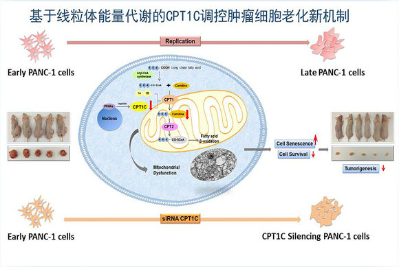 我校藥學院黃民教授、畢惠嫦教授課題組在細胞生物學期刊Cell Death & Differentiation(Nature子刊,IF=8.339)上發表題為“Carnitine palmitoyltransferase 1C regulates cancer cell senescence through mitochondria-associated metabolic reprograming”的研究論文(2018 Mar;25(4):733-746. PMID:29317762)。該研究通過代謝組學手段發現線粒體能量代謝和脂肪酸氧化的一個關鍵酶:肉毒堿棕櫚酰基轉移酶1C(CPT1C)在老化腫瘤細胞中有極顯著下降;進而在細胞老化模型及動物模型上通過多種分子生物學手段,證明CPT1C在腫瘤細胞增殖性老化過程中發揮重要的調控作用,闡明CPT1C是調控腫瘤細胞老化的新調控因子。并進一步闡明CPT1C沉默后通過影響線粒體功能與相關代謝重編程過程,導致線粒體功能異常、細胞增殖能力顯著下降,最終導致腫瘤細胞老化、致瘤能力顯著下降。該研究系統證明CPT1C是腫瘤細胞老化關鍵的新調控因子,為基于線粒體能量代謝和細胞老化的抗腫瘤研究提供新靶點和新視角。