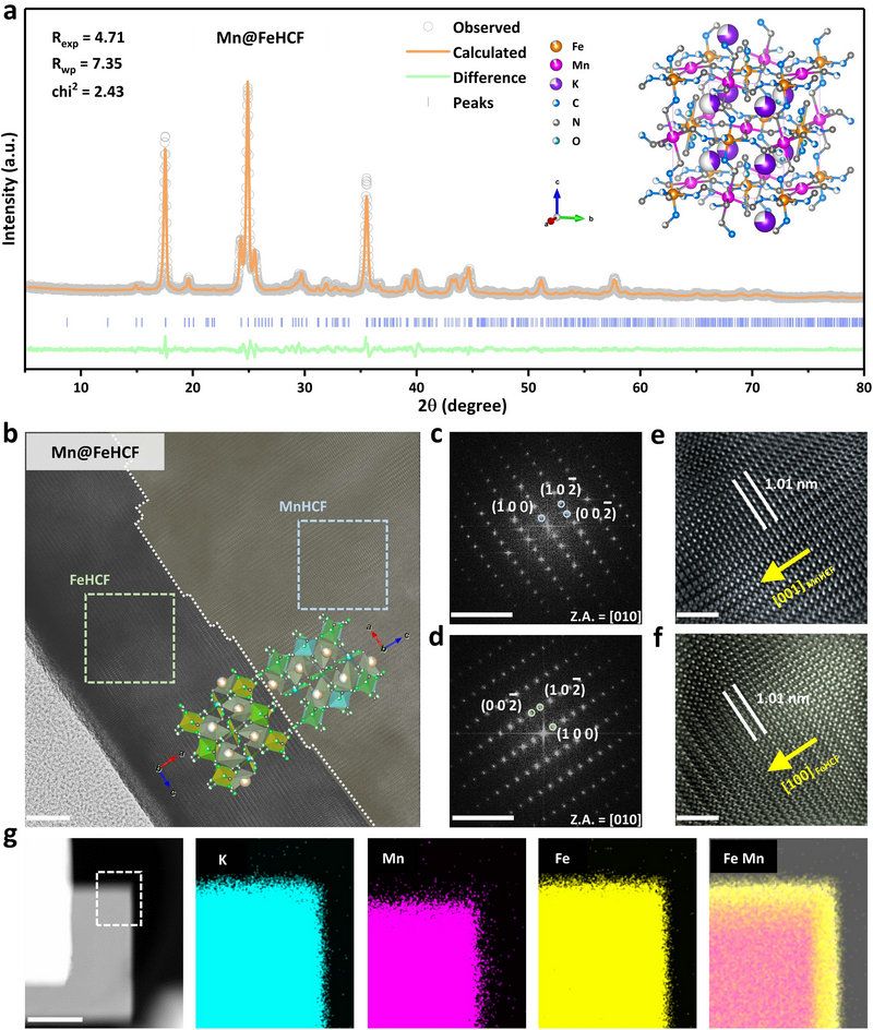 圖1. 核殼結構Mn@FeHCF復合材料的結構與形貌表征