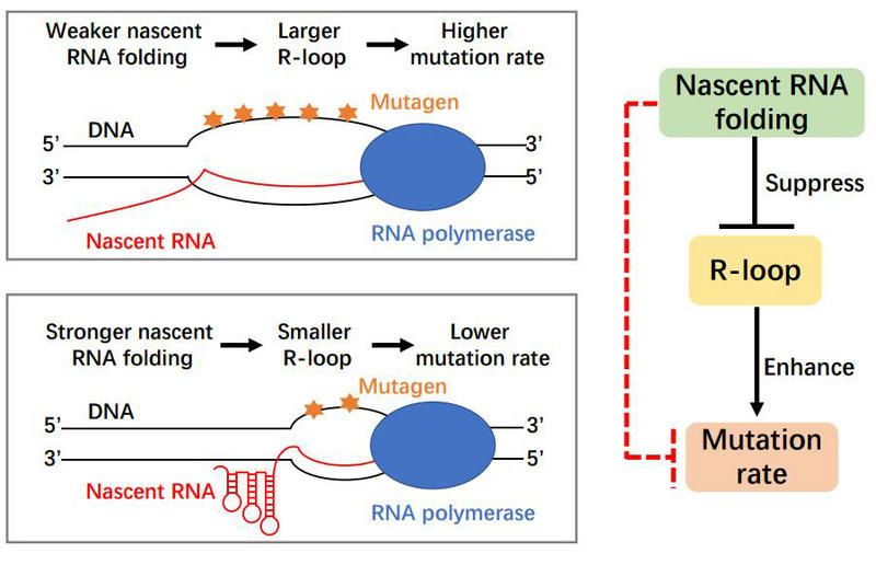 圖2 新生RNA二級結構影響DNA自發(fā)突變率的機制