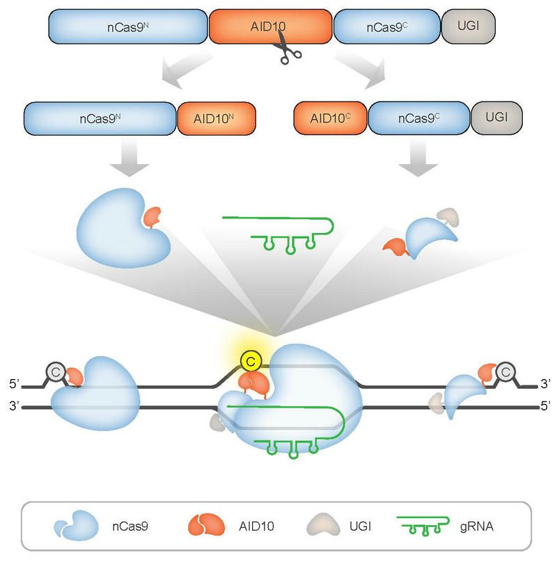 中大新聞網訊(通訊員李劍峰)CRISPR衍生的胞嘧啶/腺嘌呤堿基編輯器(CBE/ABE)由Cas9缺刻酶(nCas9)與胞苷或腺苷脫氨酶融合而成,能夠高效實現基因組C>T或A>G的堿基突變,對動植物基因功能研究、作物分子育種和人類遺傳病治療具有重要意義,被喻為CRISPR皇冠上的明珠。和CRISPR技術一樣,CBE/ABE也會因gRNA結合到基因組中與靶序列相似的序列而造成脫靶編輯(即gRNA依賴性脫靶)。近年來的研究進一步表明,CBE/ABE包含的胞苷或腺苷脫氨酶結構域會在動植物基因組和轉錄組中造成不可預測的DNA/RNA隨機脫靶編輯(即gRNA非依賴性脫靶)。這種隨機脫靶給CBE/ABE的廣泛應用帶來了負面影響。目前,解決gRNA非依賴性脫靶主要依賴點突變提高脫氨酶的高保真性或引入額外的脫氨酶活性調控元件。然而,提高脫氨酶特異性的點突變策略缺乏通用性,無法適用于不同序列/類型的脫氨酶,而且消除DNA和RNA脫靶的點突變疊加后可能會同時降低脫氨酶在靶位點的脫氨效率;引入脫氨酶調控元件則會增加系統的復雜性,也可能降低其通用性。