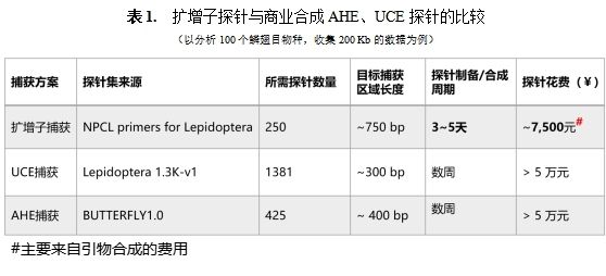 表1. 擴增子探針與商業合成AHE、UCE探針的比較