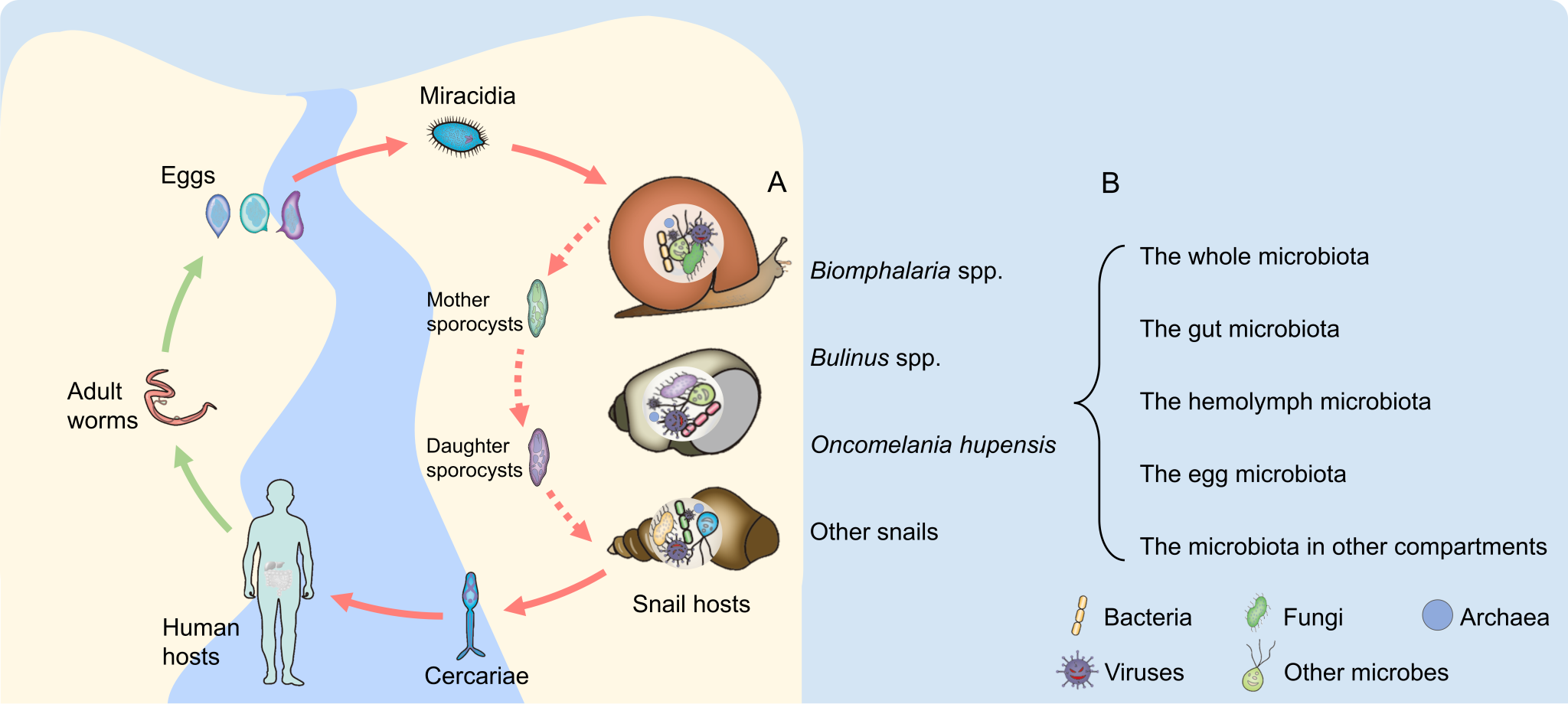 人體血吸蟲的生活史及其中間宿主螺類的微生物群