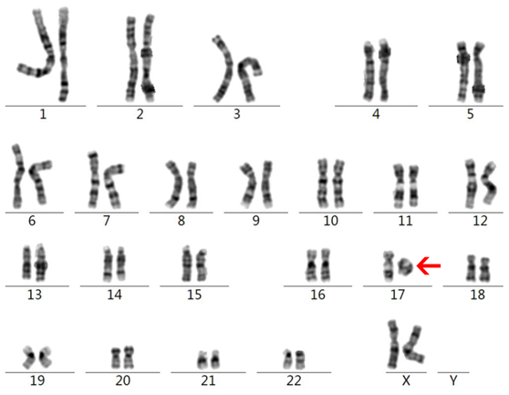 該類染色體核型結果(17號染色其中一條體呈現環形)
