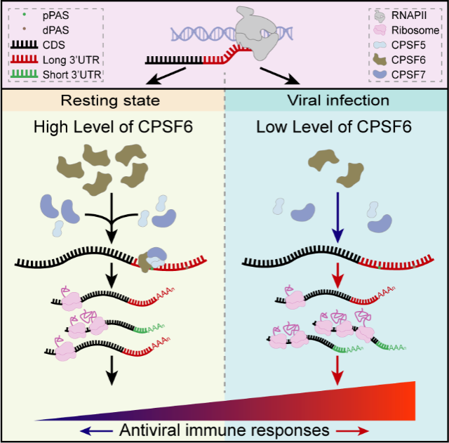 CPSF6通過APA調(diào)控細胞抗病毒天然免疫應答的機制圖