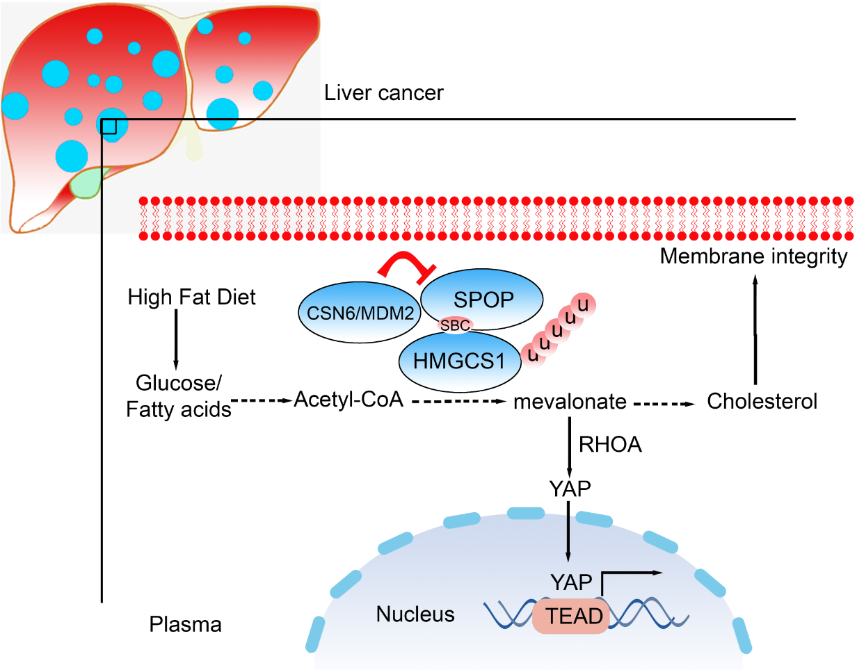 中大新聞網訊(通訊員張婷婷、戴希安、簡文楊)近日,附屬第六醫院胃腸病學研究所李孟鴻教授及其合作團隊在Advanced Science(2022IF=15.1)雜志上發表了題為 “CSN6-SPOP-HMGCS1 Axis Promotes Hepatocellular Carcinoma Progression via YAP1 Activation” 的研究論文。該研究發現COP9信號小體亞基6 (CSN6) 通過拮抗斑點型POZ蛋白 (SPOP) 泛素連接酶穩定HMGCS1,進而激活YAP1促進腫瘤的生長,為靶向腫瘤代謝異常的精準治療提供了新思路。