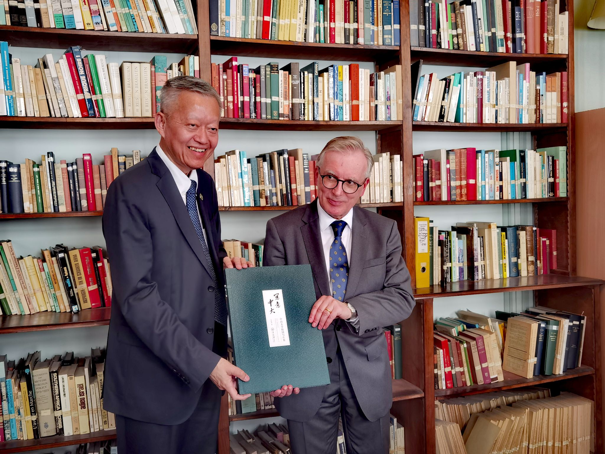 6月20日下午,陳春聲書記率代表團一行訪問了法國海外科學院,與科學院終身秘書長Dominique Barjot教授、科學院圖書館館長Pierre-Yves BELFILS教授、聯合國教科文組織前外交官Andrei Chevelev、聯合國教科文組織非洲優先與對外關系部門亞太事務部對外關系專員、中山大學2006級本科校友王瑋博士等開展了深入交流。法國海外科學院是1922年成立的致力于全球法語國家與地區研究的國家級科研機構,目前擁有院士275人,也是相關地區研究資料最豐富的單位。海外科學院在法國區域國別研究、海外領地治理以及國際發展援助等領域也發揮著重要作用。