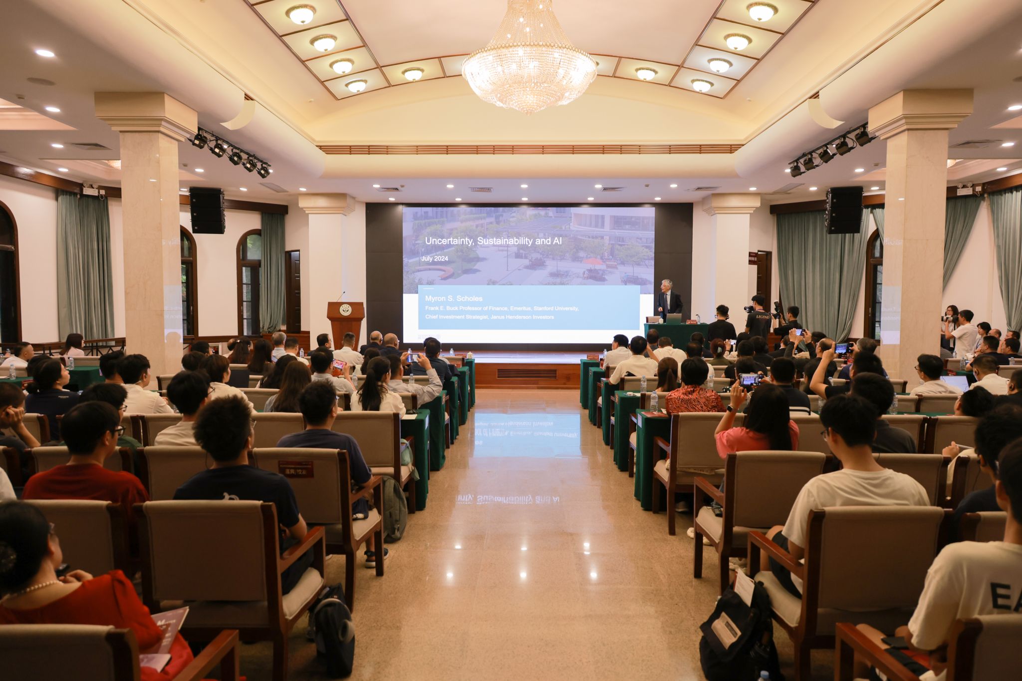 斯科爾斯教授指出,脫碳是人工智能應用的重要場景,而實現可持續未來的關鍵在于關注尾部風險。為了實現可持續性,需要降低尾部風險以創造凸性。斯科爾斯教授展望了未來人工智能發展的四個前沿場景:人口結構、技術、稀缺性和政府治理,理解這些動態變化,在應對過程中保持靈活性和創新能力,將是未來成功的關鍵。講座在觀眾的熱烈掌聲中圓滿結束。