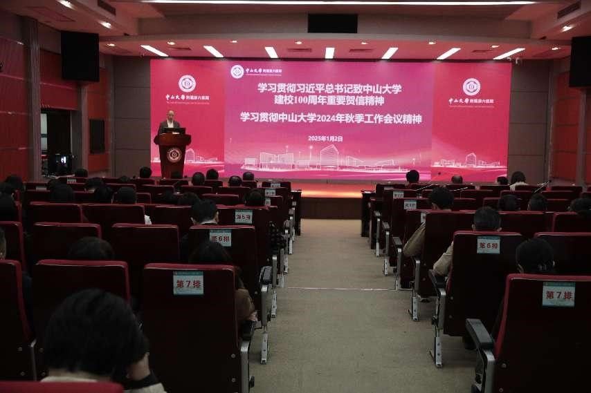 院黨委書記李漢榮傳達了學校2024年秋季工作會議上朱孔軍書記《深入學習貫徹習近平總書記重要賀信精神 以高質量黨建引領學校治理現代化》講話精神,強調深入學習貫徹習近平總書記重要賀信精神,是學校當前和今后一段時期的首要政治任務,要以賀信精神為指引,加快建設世界一流大學。講話明確指出,學校將圍繞學習貫徹相關重要論述、加強基層黨組織能力建設、堅持系統觀念、優化制度體系建設和干部隊伍建設五個方面“一體推進”學校治理體系和治理能力建設,以實現發展目標。此外,李漢榮書記傳達了學校黨委副書記、紀委書記、國家監委駐中山大學監察專員刁振強在秋季工作會議上作的警示教育專題報告精神,并結合醫院實際進行了紀律教育、警示教育,要求醫院全體師生員工以案為鑒、以案促改、以案促治,警鐘長鳴、強化震懾,推進黨紀學習教育常態長效。