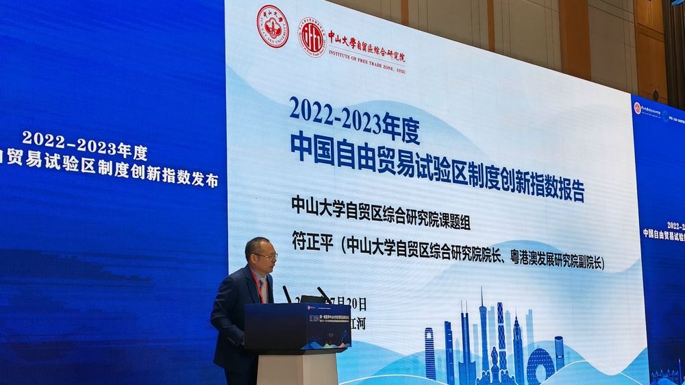 7月20日,中山大學(xué)自貿(mào)區(qū)綜合研究院(簡(jiǎn)稱“研究院”)正式發(fā)布“2022-2023年度中國(guó)自由貿(mào)易試驗(yàn)區(qū)制度創(chuàng)新指數(shù)”。此次活動(dòng)是研究院連續(xù)第八年對(duì)中國(guó)自由貿(mào)易試驗(yàn)區(qū)制度創(chuàng)新成效進(jìn)行綜合評(píng)估,并發(fā)布相關(guān)研究成果。中山大學(xué)自貿(mào)區(qū)綜合研究院院長(zhǎng)符正平教授代表課題組介紹“2022至2023年度中國(guó)自由貿(mào)易試驗(yàn)區(qū)制度創(chuàng)新指...