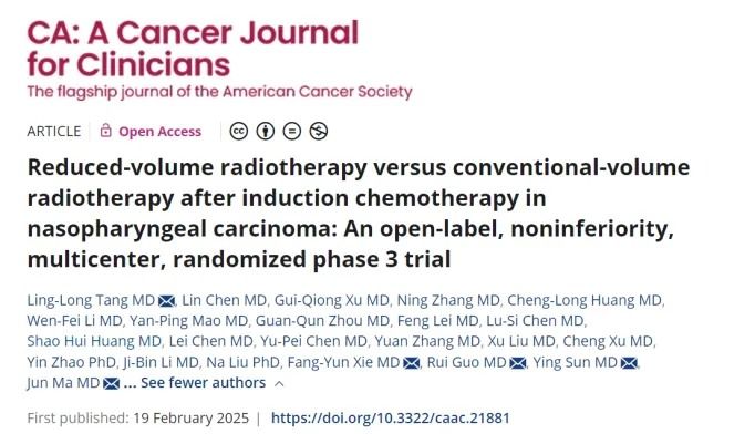 2月20日,中山大學腫瘤防治中心馬駿院士團隊發布一項新研究,證實在局部中晚期鼻咽癌患者的放射治療中,僅照射化療后的腫瘤范圍,不會增加癌癥復發,且顯著降低了毒副反應,改善患者生活質量。該研究發表在國際腫瘤學巔峰期刊《臨床醫師癌癥雜志》(CA:A Cancer Journal for Clinicians)(影響因子503.1)上。該刊物既...