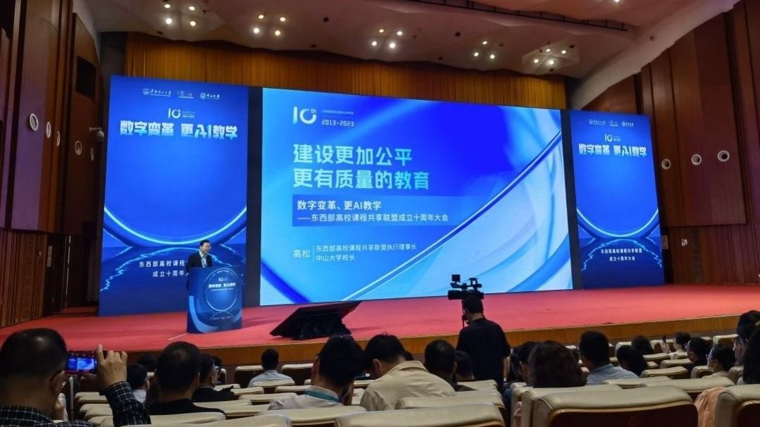 中大新聞網(wǎng)廣州4月13日電(記者邱清萌) 4月11日,以“數(shù)字變革、更AI教學”為主題的東西部高校課程共享聯(lián)盟成立十周年大會在廣州召開。大會由華南理工大學與中山大學聯(lián)合主辦、智慧樹網(wǎng)承辦。教育部高等教育司一級巡視員宋毅,北京大學原校長、東西部高校課程共享聯(lián)盟榮譽理事長林建華,中國科學院院士、東西部高校課程共享聯(lián)盟執(zhí)行理事長、中山大學校長高松,華南理工大學黨委副書記麥均洪,以及喀什大學、塔里木大學、齊魯工業(yè)大學等10余所高校領導出席會議。會上,高松校長作了主題報告。