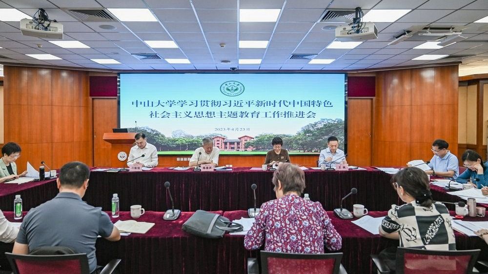 中大新聞網廣州4月26日電(記者梁寧寧)4月23日,中山大學學習貫徹習近平新時代中國特色社會主義思想主題教育工作推進會在廣州校區南校園舉行。全體在校校領導、主題教育領導小組成員、各二級黨委(黨總支)、直屬黨支部、黨工委書記、校黨群機關各部門正職參加會議。會議由學校主題教育領導小組組長、校黨委書記陳春聲主持。