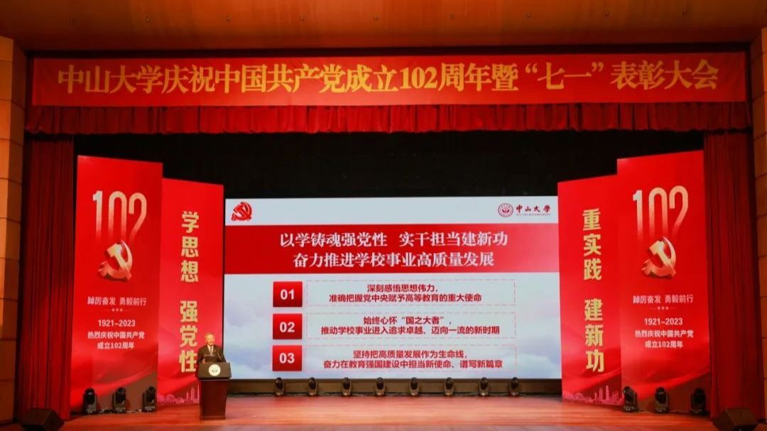 中大新聞網(wǎng)廣州7月1日電(記者余婷)6月30日下午,中山大學(xué)慶祝中國共產(chǎn)黨成立102周年暨“七一”表彰大會在廣州校區(qū)南校園梁銶琚堂舉行。