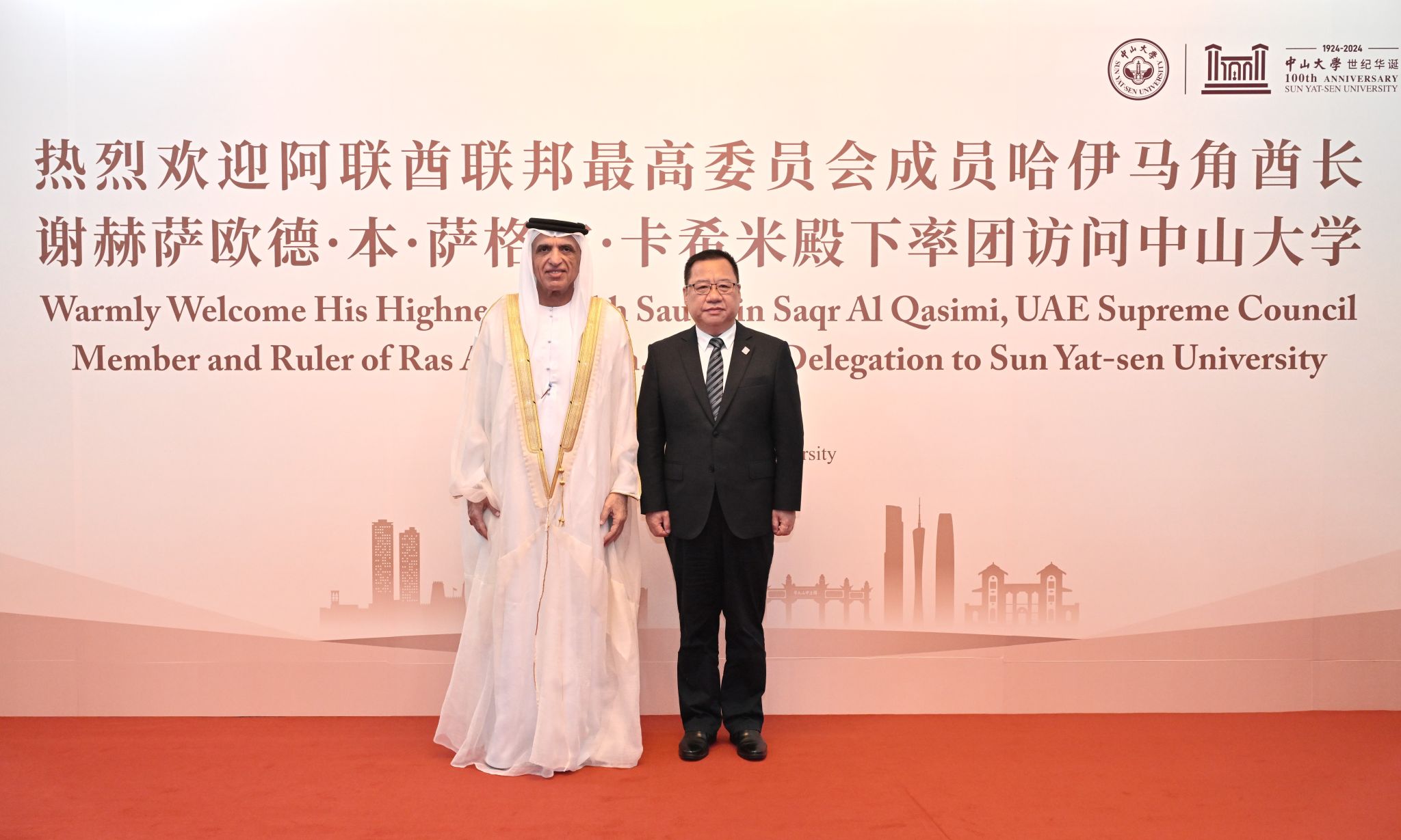 中大新聞網訊(通訊員劉英杰)2024年11月19日,阿拉伯聯合酋長國聯邦最高委員會成員、哈伊馬角酋長——謝赫薩歐德·本·薩格爾·卡希米殿下及其代表團一行來訪中山大學。中山大學黨委書記朱孔軍在南校園圖書館學人文庫與來賓舉行會談。隨后卡希米酋長在懷士堂參加了主題為“共筑文化橋梁:中國與阿聯酋的友誼與合作”的學生交流活動。廣東省外事辦公室錢紅潔副主任、阿拉伯聯合酋長國駐華大使侯賽因·哈馬迪先生、阿拉伯聯合酋長國...