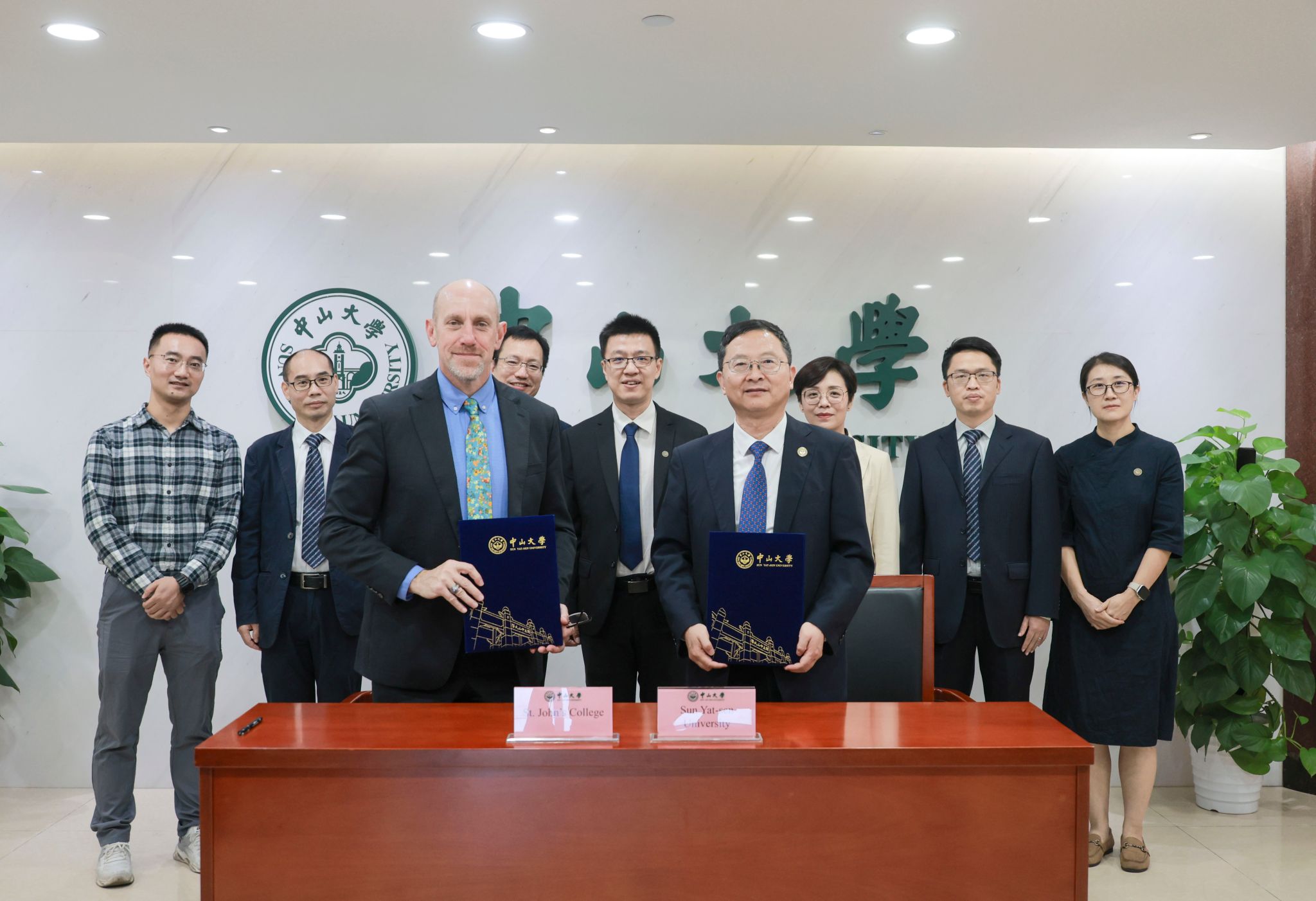 中大新聞網訊(通訊員孟琳)11月13日上午,中山大學與圣約翰學院在廣州校區(qū)南校園中山樓313貴賓室簽署合作諒解備忘錄,雙方將攜手在教師及學生交流等方面開展合作,促進人才培養(yǎng)高質量發(fā)展。中山大學校長高松教授與圣約翰學院校長J. Walter Sterling現場簽約,中山大學副校長謝湜教授、博雅學院全體黨政領導班子成員及國際合作與交流處代表參與見證。簽約儀式由博雅學院院長陳建洪教授主持。中山大學與圣約翰學院合作諒解備忘錄...