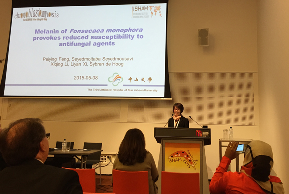 Associate Professor Feng Peiying (Department of Dermatology, The Third Affiliated Hospital of Sun Yat-sen University) is the convener of ISHAM Chromoblastomycosis working group. She was invited to the congress and gave presentation on the topic of “Melanin provokes Fonsecaea monophora exhibiting reduced susceptibility to azoles”. Chromoblastomycosis is one of the most prevalent and highly mutilating (sub)cutaneous diseases in tropical and subtropical climate zones, which is very difficult to cure. Fonsecaea monophora is the main pathogen of chromoblastomycosis in southern China. There was an open and active discussion among participants focusing on the updated research of chromoblastomycosis, which will promote research, international cooperation and other scientific activities in the coming future.