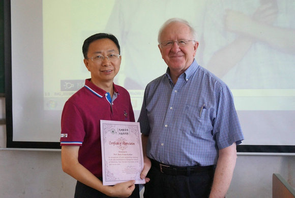 Prof. Guoquan Gao presenting a certificate of appreciation to Prof. Barry Koehler