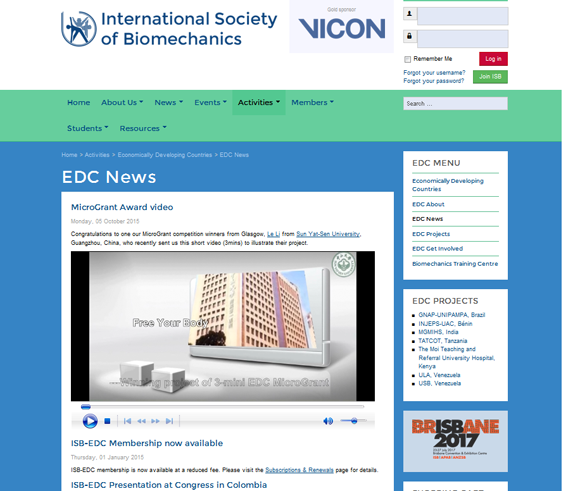 The International Society of Biomechanics (ISB) held its 25th annual conference at Glasgow, Scotland recently. A Three-Minute EDC MicroGrant Competition was conducted during the conference. Recognizing that sustainable solutions to challenges in Economically Developing Countries (EDCs) are initiated by local researchers and collaborators, this competition is intended to support innovative ideas while raising awareness about related challenges within the ISB community. Projects as proposed are intended to employ biomechanics to address challenges in an underrepresented community, provide biomechanics training and education in EDCs, and/or foster biomechanics growth in EDCs. Project leader should give a 3-min presentation during the conference for the competition.