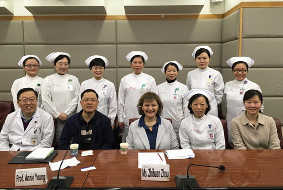 On March 16, 2016, Annie Young, Professor of Nursing from the University of Warwick (UoW), UK visited Sun Yat-sen University Cancer Center (SYSUCC), exchanging ideas with experts from SYSUCC regarding collaboration opportunities in nurse training and exchange between the two institutions. Prof. Chao-Nan Qian, Vice-president of SYSUCC, Ms. Huiying Qin, Director of the Nursing Department, Prof. Li Zhang, Deputy Director of Medical Oncology, Ms. Benyan Zou, Ms. Zhihuan Zhou, Ms. Yalan Wang, Ms. Simei Shi, Ms. Yushan Liu, Ms. Wei Huang, Ms. Yu Liu and Ms. Shuang Liao from SYSUCC also attended the collaboration meeting.