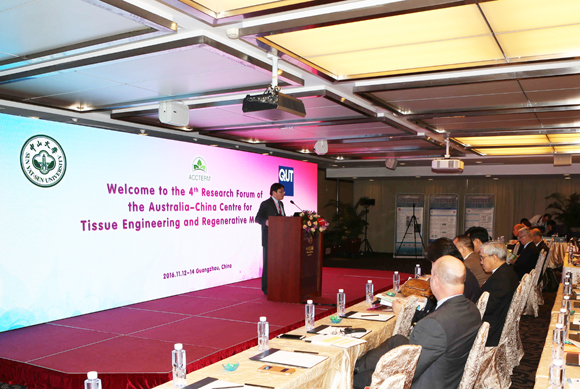 On November 12-14, 2016, the 4th Research Forum of the Australia-China Centre for Tissue Engineering and Regenerative Medicine (ACCTERM), undertaken by Hospital of Stomatology, Sun Yat-sen University (SYSU), was held successfully. The main theme of this year’s Forum is to promote and expand scientific cooperation and communication between China and Australia, and accelerate the translation process of stem cell technology, biomaterials, and medical devices from the perspectives of scientists, bioengineers and clinicians. Experts from the United States, Australia and China gathered together to share emerging science, exchange ideas, strengthen collaborative links and develop innovative research project concepts. Excellent postgraduate students from stomatology schools at universities in China participated in the oral presentations at the Forum.