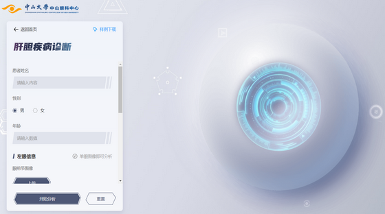 Figure 2. Interface of Hepatobiliary Disease Screening System of Intelligent Diagnosis and Prediction Platform of Zhongshan Ophthalmology Center, Sun Yat-sen University