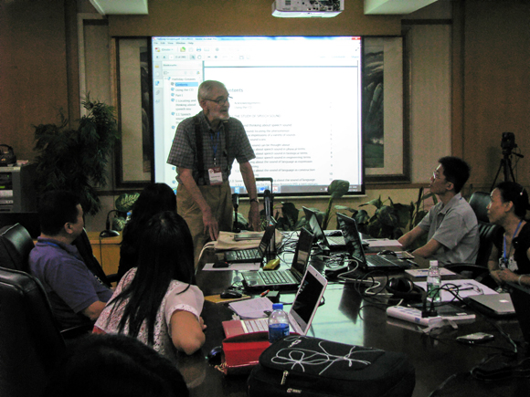 Running parallel to the workshop is the course on “Intonation in the Grammar of English”, which started today and will last until Saturday July 13. It is taught by Emeritus Professor William S. Greaves and Meena Dabashsish. The course aims to introduce all strata of systemic functional analysis with particular emphasis on the lower end of the realization chain: choices in the English intonation sound system realizing choices in the lexicogrammar.