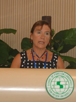 After the parallel presentations in the morning, Professor Wendy L. Bowcher delivered a plenary speech entitled “Context of Situation: Problems, Paths, and Utility”. She introduced the background of context of situation and observed the various issues that arise and which point to the advantages but also the difficulties of putting together a representative set of system networks for context of situation. According to Professor Bowcher, the issues include the concept of ‘semiotic’, the interdependency of the contextual parameters, default dependency relations, representative primary system entry points, sub-system features and environments for more delicate options, the relationship between the material and the semiotic in a situation of language use, multimodality, and the role of ‘iteration’. Professor Bowcher also discussed and illustrated some of these issues and proposed some possible ways of dealing with them through examining a variety of texts/contexts and working through some of the subsystems in the currently available contextualization system networks.
