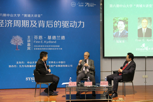 On June 22, the 6th SYSU Whampoa Forum was held in the International Conference Hall at Sun Yat-sen Business School (SYSBS). The theme of the forum was "Driving Forces behind Business Cycles", presented by Dr. Finn E. Kydland, the famous Norwegian economist, Henley Professor of Economics at the University of California, Santa Barbara, and the Nobel Prize laureate in 2004. In attendance were more than 500 college students, faculty members, research scholars and business representatives.