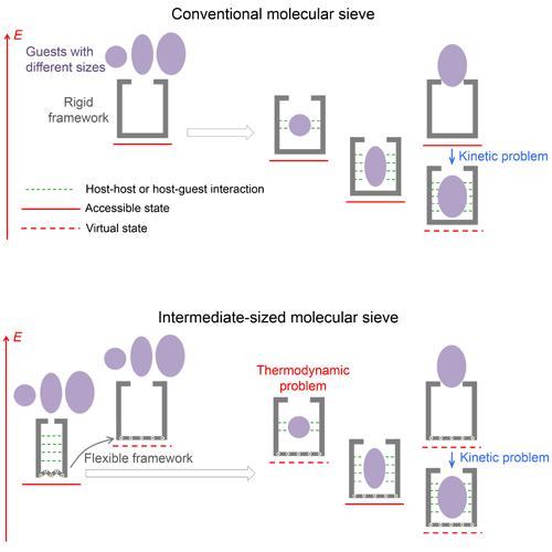 Fig. 1 Comparison between conventional molecular sieve and intermediate-sized molecular sieve.