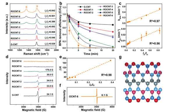 Figure 2. Characterization of defective CNTs and catalytic performance of the CNT/PS system for organic pollutants degradation.