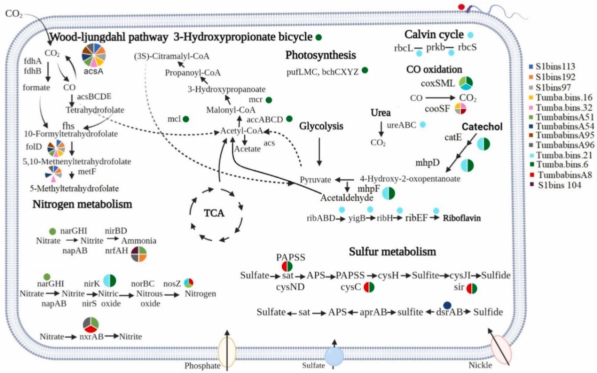 Figure 2 Overview of some key metabolic pathways in Chloroflexota MAGs.